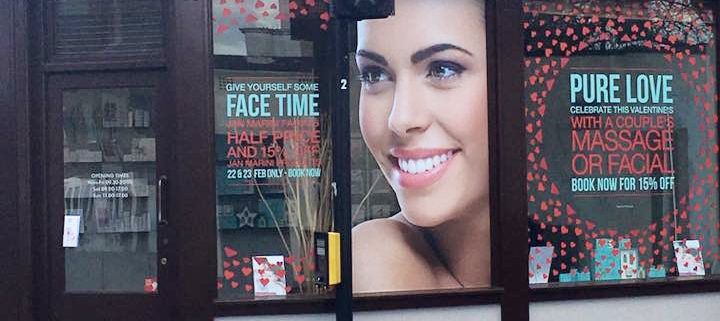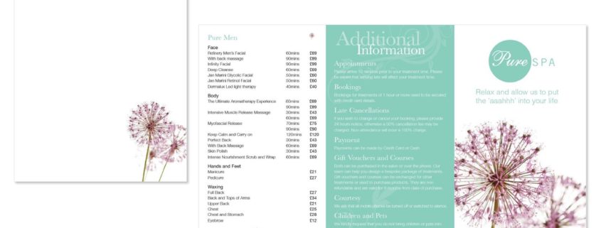 Windsor based beauty salon Pure Spa needed branding to draw attention. The salon is in the town centre but close to a road, so they needed posters and displays which would catch not only the eye of walkers by by people driving past