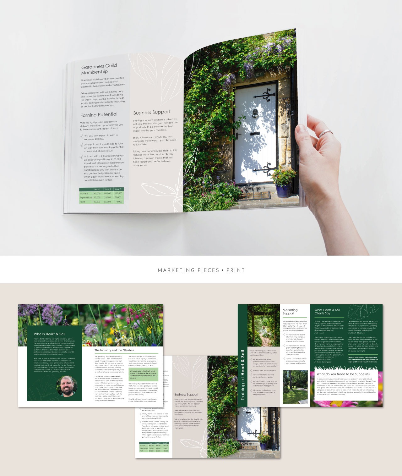 Heart & Soil contacted us to work on their logo and marketing pieces. Using a colour palette of naturals and a deep green, the design was softened with the use of hand drawn illustrations. The result was contemporary marketing pieces with flexibility to use elements of the design through the rest of their branding.